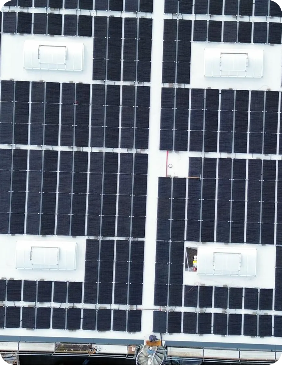 Der erzeugte Strom wird direkt vor Ort genutzt. So profitiert der Mieter von planbaren Energiekosten, während der Eigentümer eine langfristige und rentable Nutzung seiner Dachflächen ermöglicht. Rund 50 % des jährlichen Strombedarfs können durch die Anlage gedeckt werden - sauber, kalkulierbar und unabhängig von Strommarktschwankungen.