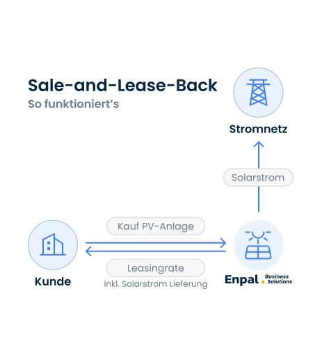 Beim Sale-and-Lease-Back erwerben Sie eine schlüsselfertige Photovoltaikanlage direkt von uns. Anschließend mieten wir die Anlage von Ihnen zurück und übernehmen die gesamte Nutzung sowie den laufenden Betrieb. Sie sind damit Eigentümer der Anlage und profitieren von vertraglich gesicherten Mieteinnahmen über die gesamte Laufzeit.